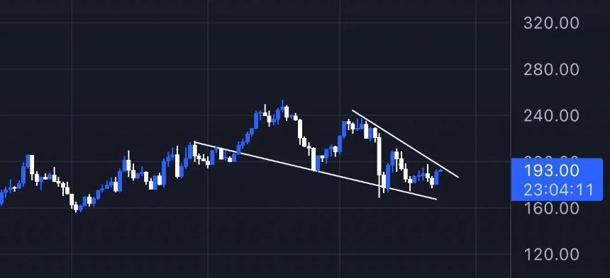 分析师0xBossman指出,SOL已形成下降楔形,并预测若突破200美元,目标价位可能升至240美元至280美元区间。若170美元附近的支撑位得以维持,持续的市场动能和成交量甚至可能推动SOL价格上涨至300美元。